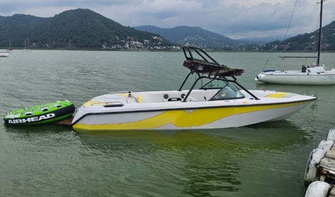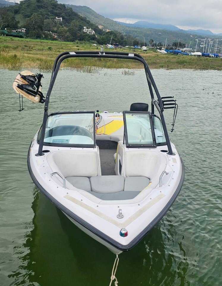 chalecos, todo el equipo para realizar la actividad, skies, wakeboad, dona sonido vía bluetooth, y hielera.